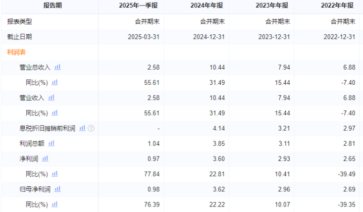 2024年,达梦数据实现营业收入10.44亿元,较上年同期增长31.49%;归母净利润3.62亿元,较上年同期增长22.22%。今年一季度,该公司营收和归母净利润分别为2.58亿元和0.98亿元,同比分别增长55.51%和76.39%。